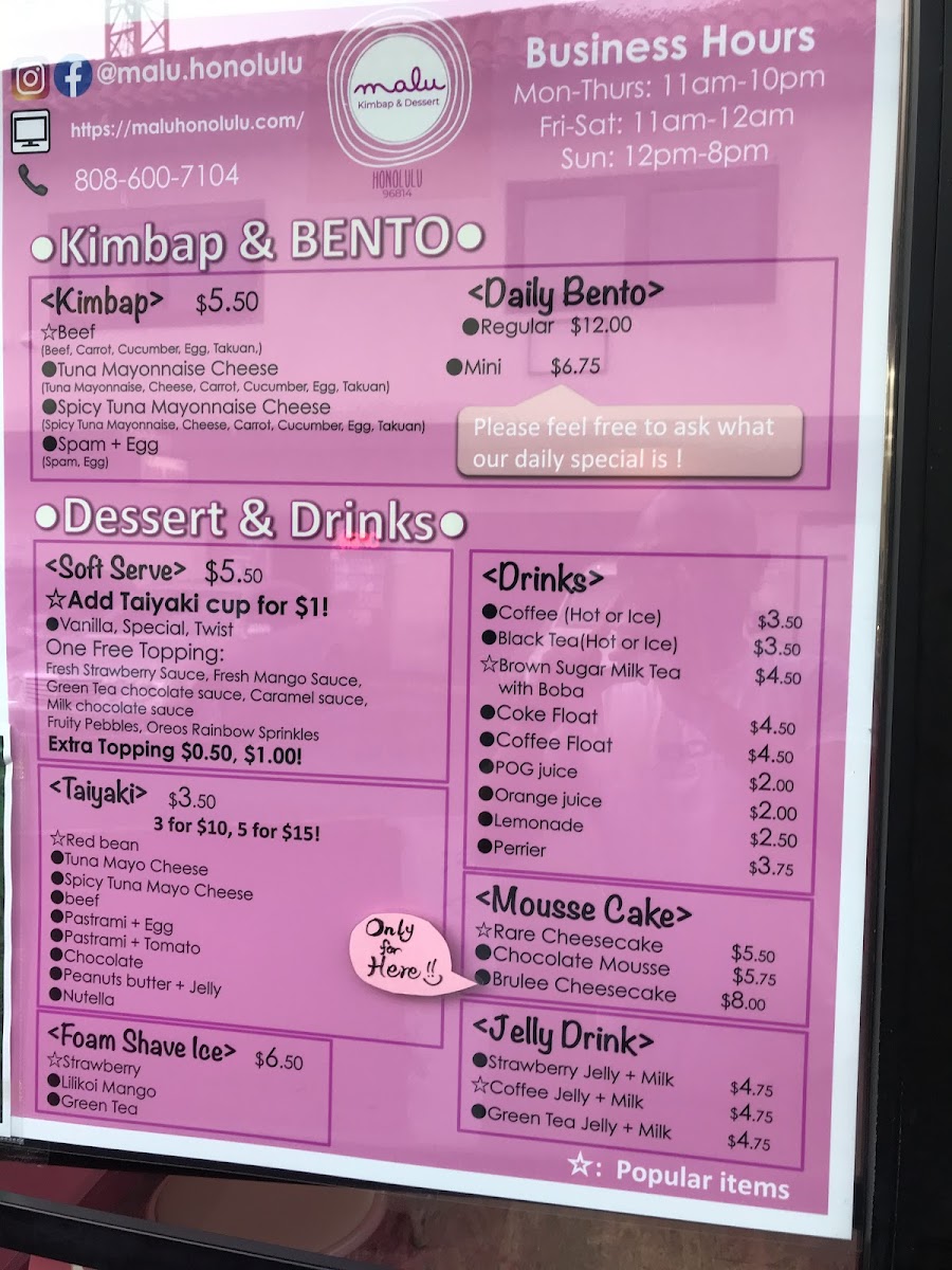 With its cozy atmosphere and friendly service, Malu Honolulu is certainly a hidden gem for food lovers and dessert enthusiasts alike!
